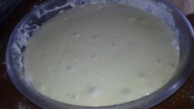 Aqui vemos como esta la masa madre despues de reposar toda la noche.