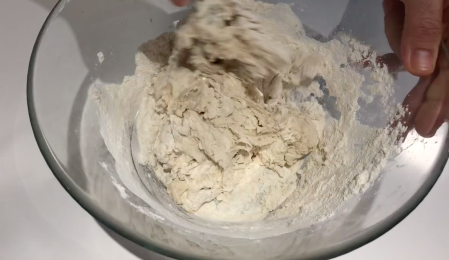 Vamos realizando pliegues. Y vamos dejando fermentar la masa durante 2 horas, cada 20 minutos vamos haciendo pliegues.