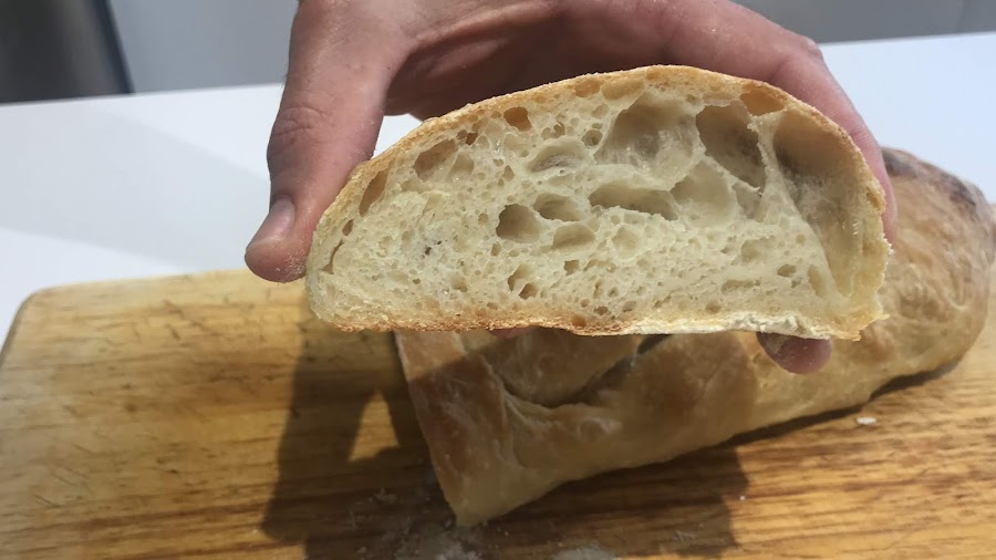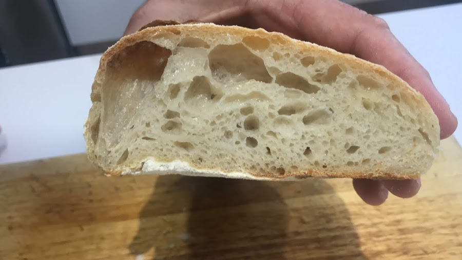 Por dentro las horas de fermentado nos dan esta maravilla de alveolos.