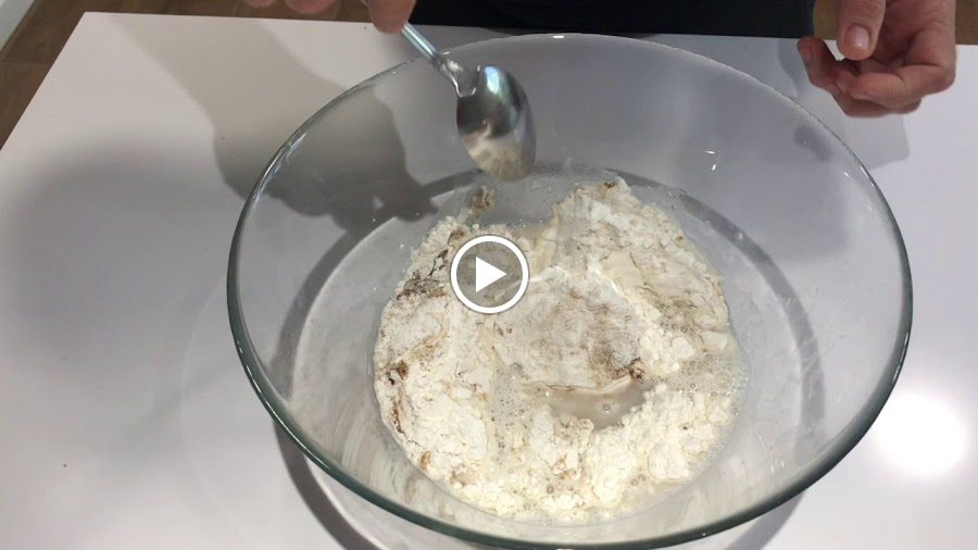 En un bol grande mezclamos todos los ingredientes, es muy importante disolver la levadura en el agua y sobre todo que el agua no esté muy caliente.