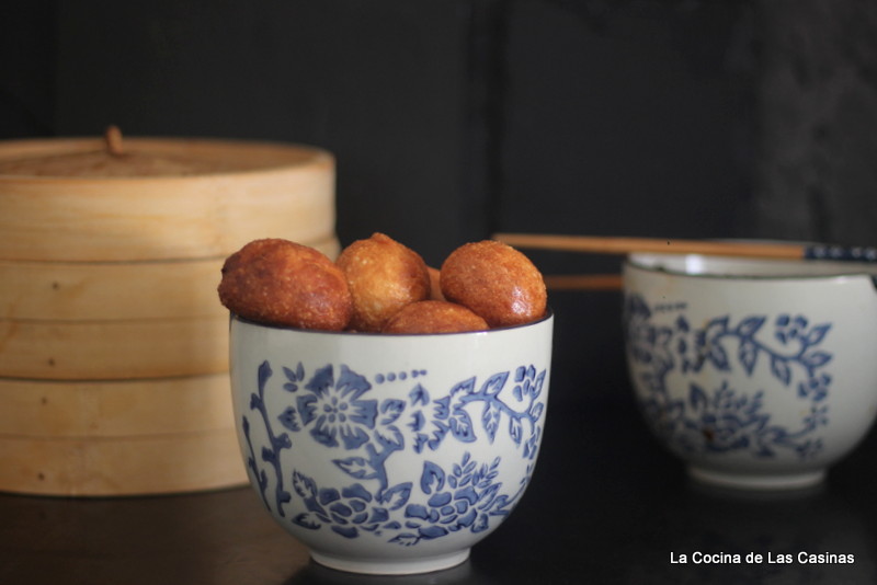 El resultado es el que ves en la foto. Calienta el aceite y frie cada panecillo hasta que se dore. Retira en papel cocina que absorberá el exceso de grasa.