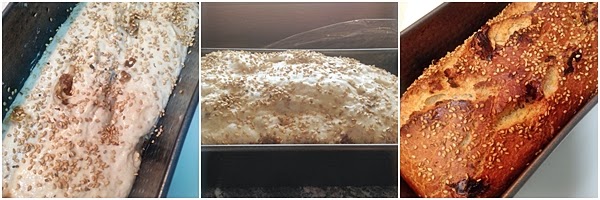 Una vez transcurrido el tiempo del primer levado, sacamos la masa del bol y le incorporamos los dátiles cortados y las semillas de sésamo.