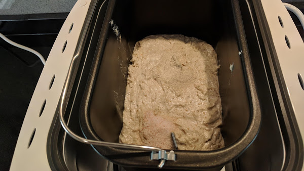 2. Echamos la mezcla en la cubeta de la panificadora y dejamos que repose un máximo de 1 hora (autólisis)