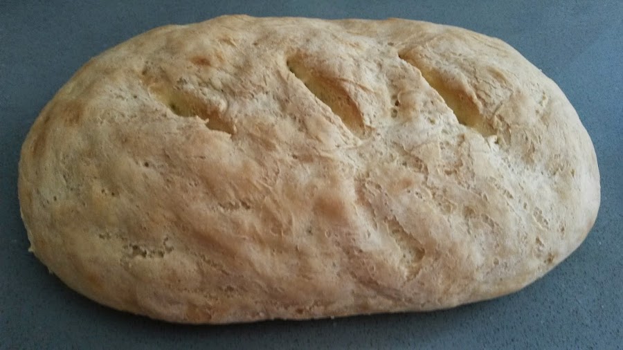 5. Darle la forma rectangular al pan, incidirle varios cortes transversales y colocarla en una bandeja de horno con papel de hornear y dejarla fermentar otra hora y media, cubierta y en el horno.
