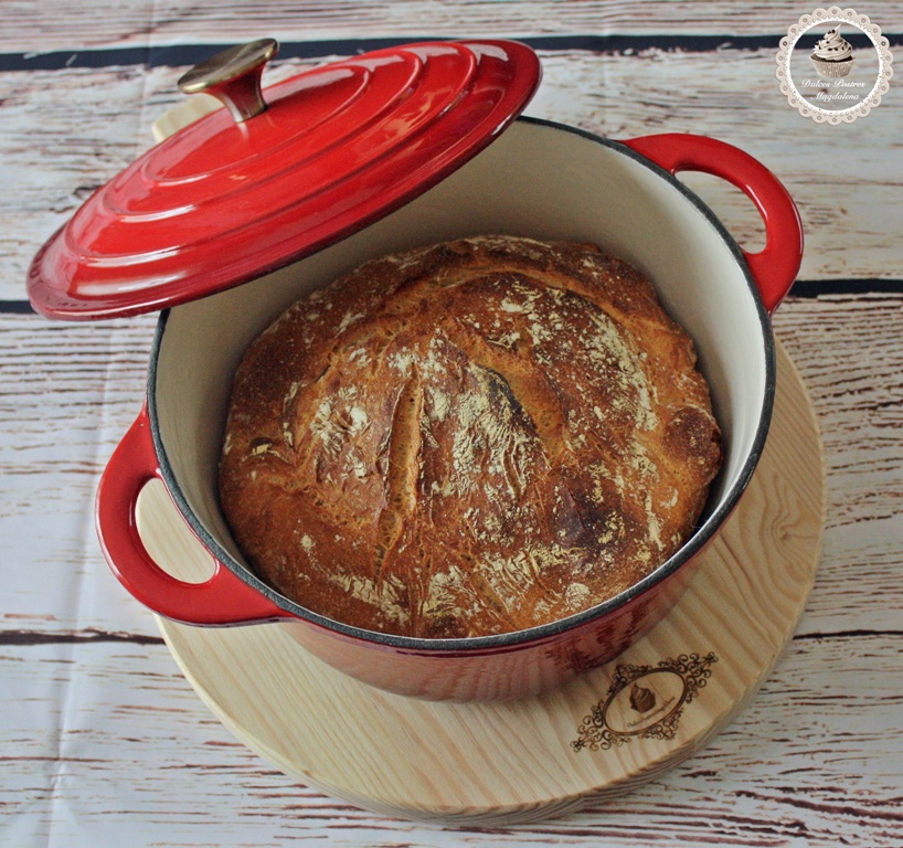 La cocotte imita muy bien a un horno de verdad, transmitiendo mucho calor de manera homogénea y uniforme. Además, como la cocotte es hermética, la propia humedad que libera el pan al hornearse es suficiente para que aumente de tamaño, no necesitamos añadir humedad adicional como se suele hacen con el resto de panes.