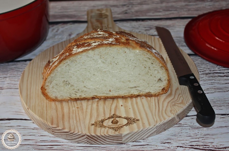 Debo confesar que lo que más me llamó la atención de este pan, fue su corteza, ya que queda súper súper crujiente, y esto es debido a que fue horneado en cocotte.
