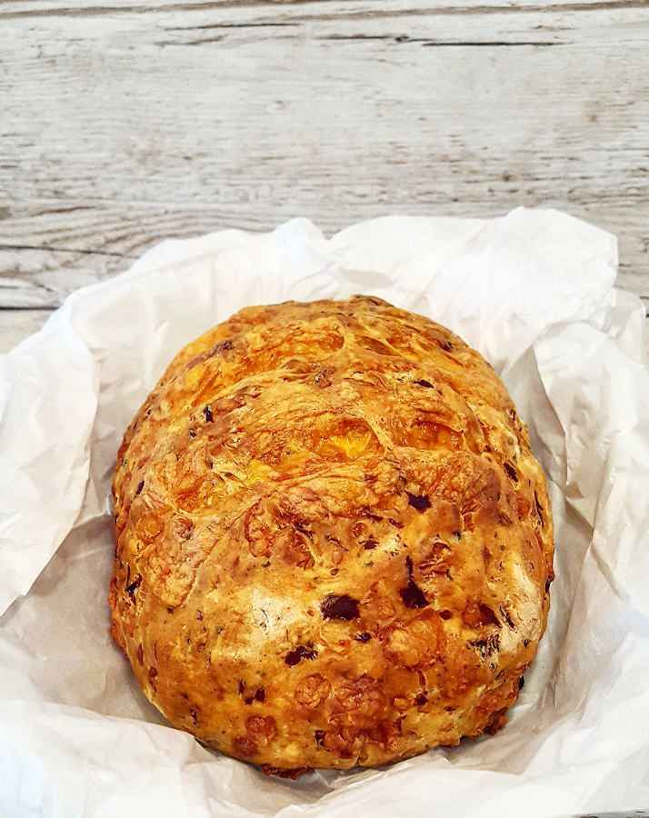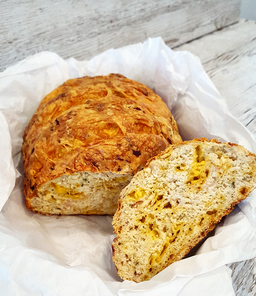 Pasado este tiempo, le hacemos unos cortes con un cuchillo en la parte de arriba (como los que tiene a veces el pan) y ponemos los 10 gramos de cheddar que habíamos dejado apartados por encima (en trocitos).