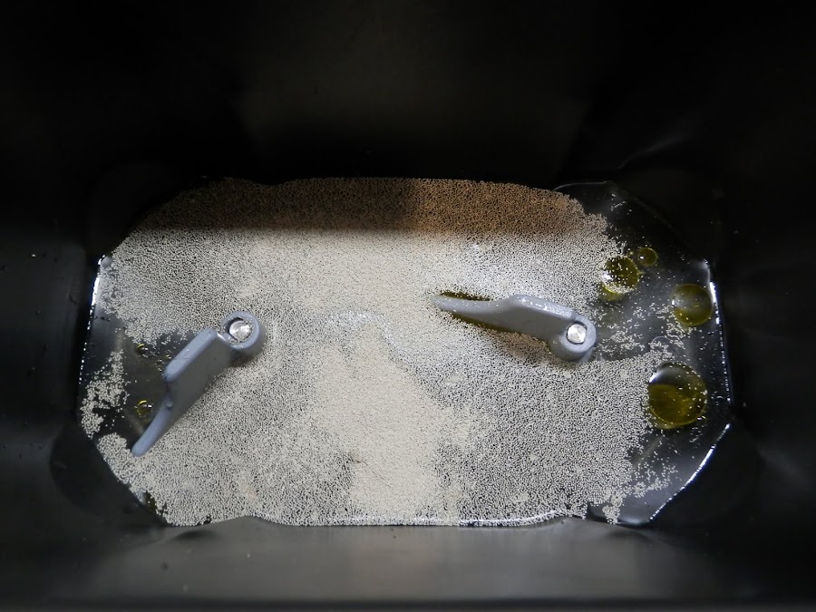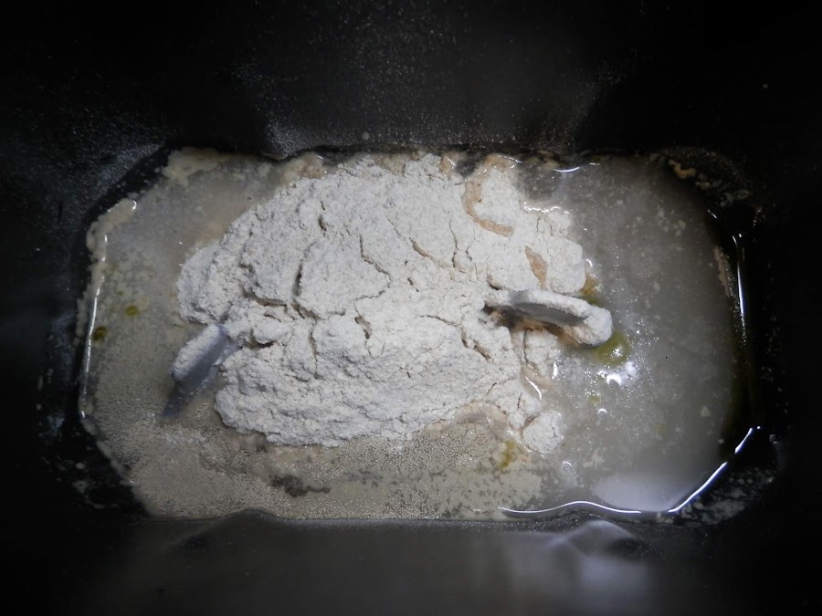 En primer lugar, pon los ingredientes húmedos en la cubeta.
