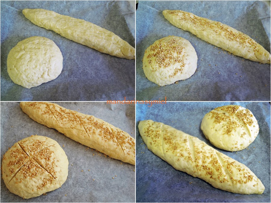 Dale a la masa la forma que tu quieras, yo he hecho una barra y una hogaza pequeña.