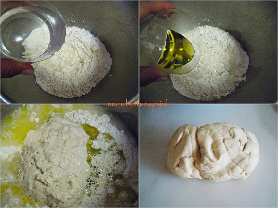 Vamos con la masa de pan:(yo este paso lo he hecho con la amasadora)