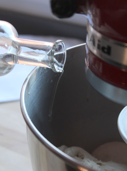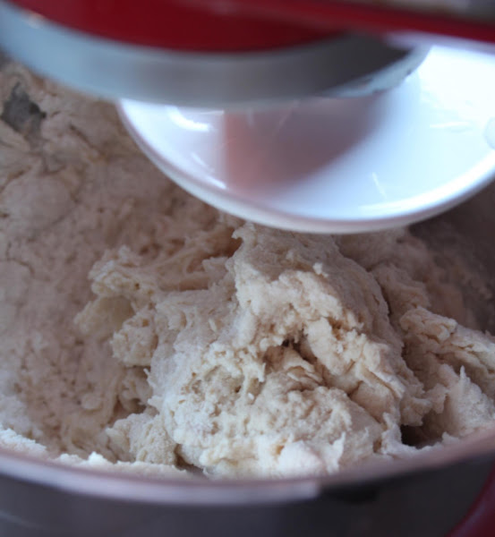 Una vez integrado el aceite, los 150 gr de agua. Poco a poco... Lleva tiempo el amasado.