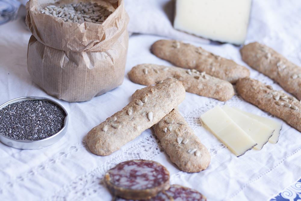 El pan tipo biscotes crujientes gusta a todos, más todavía si es tiene algún toque especial como este. Hemos preparado este pan para tener algo sanote que picar entre horas. En esta ocasión lo hemos elaborado con harina de trigo integral y pipas de cultivo ecológico. Podéis añadirle otras semillas como de calabaza, chía, sésamo… Incluso vuestra especie favorita, que no sea por variedades!