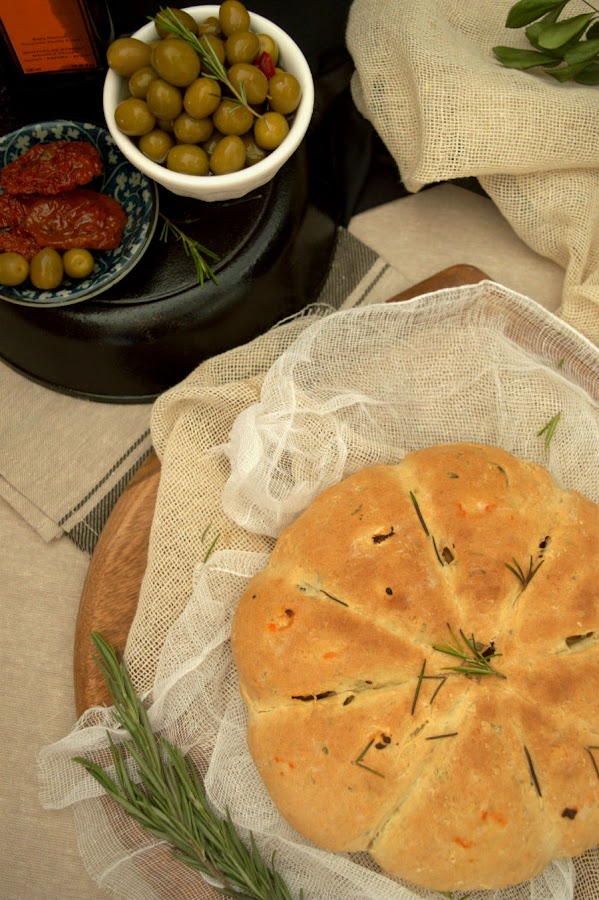 PAN DAMPER AUSTRALIANO CON ACEITUNAS Y TOMATE