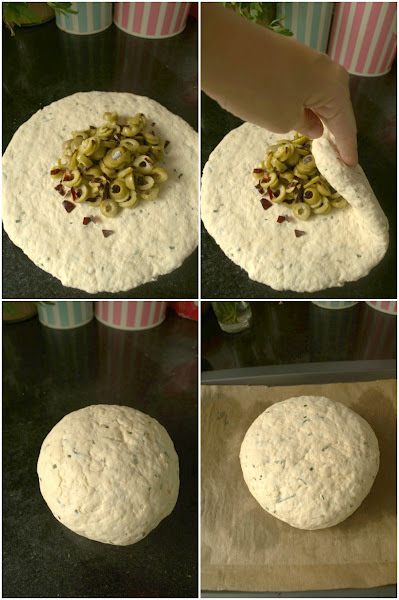 Bend the edges toward the center of the disc and turn the bread upside down.