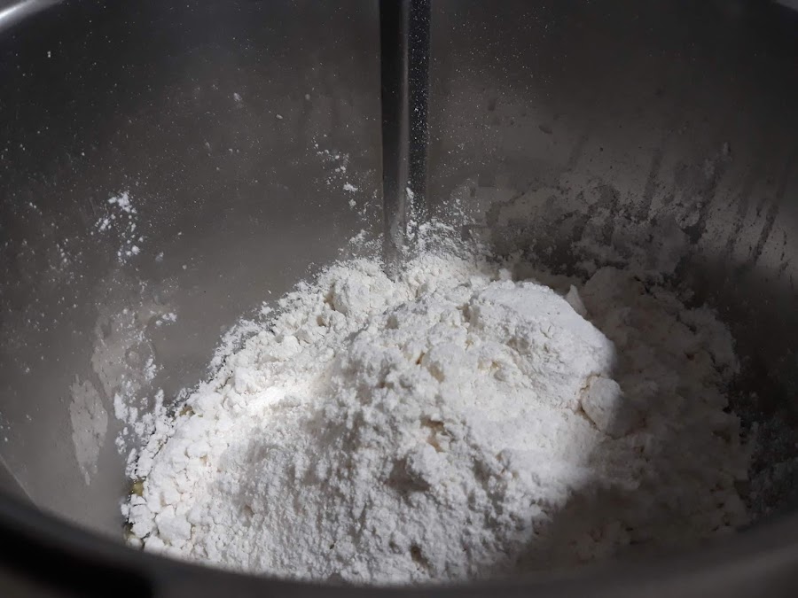 2.- Añadimos la harina, 30 gr. de aceite y la sal, y amasamos 2 minutos, función amasar.