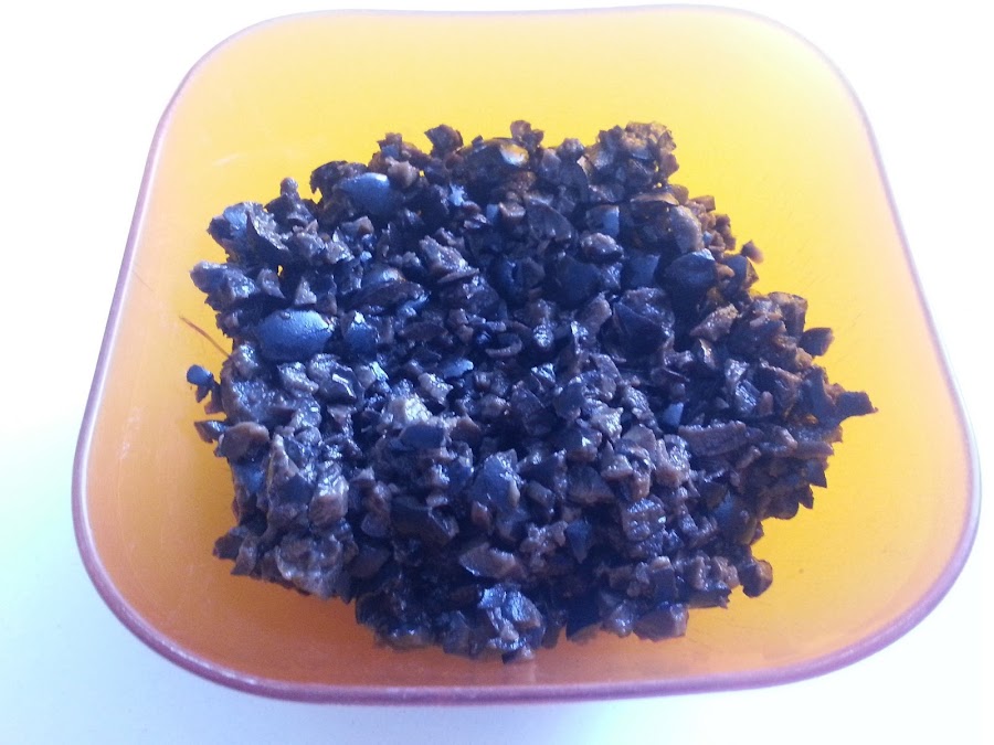 1. - Lo primero es picar las aceitunas, si tenéis picadora mejor, en la termo 6 segundos a velocidad 4 y reservamos.