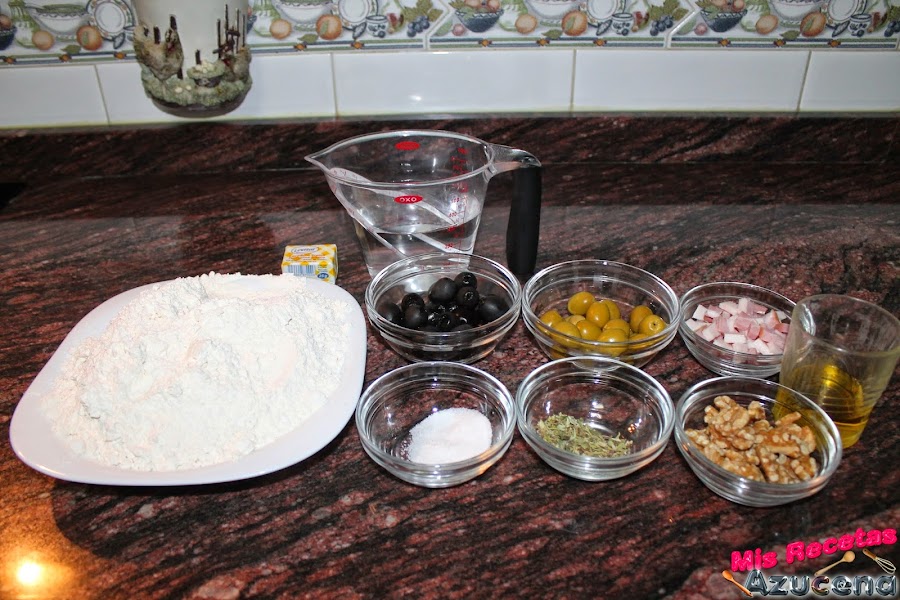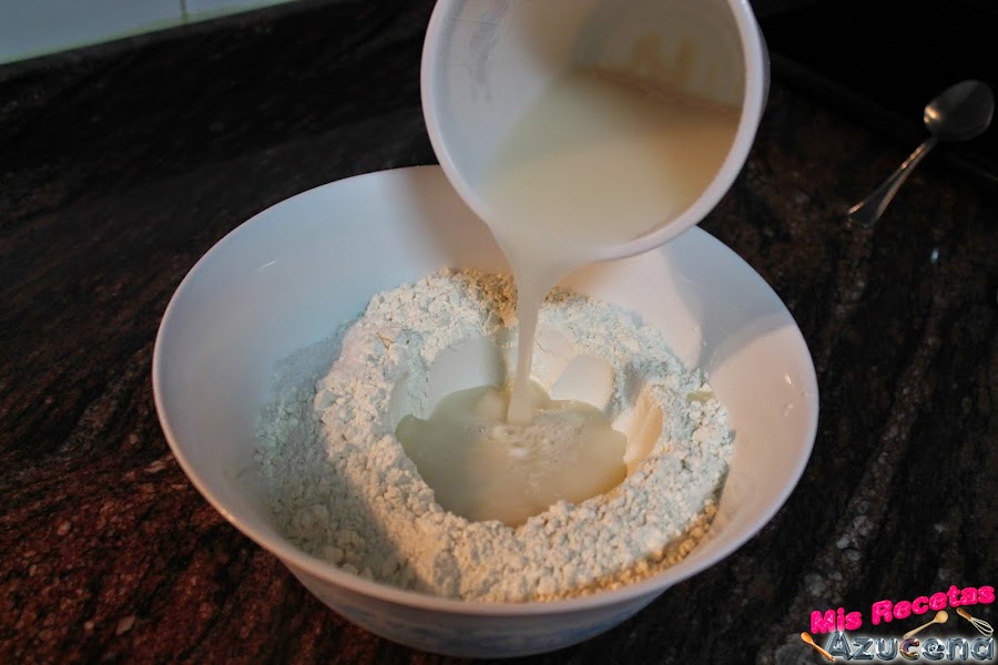 Transcurridas las dos horas empezaremos a preparar la masa, para ello pondremos en un bol la harina, haremos como un volcán en el centro y en un lado pondremos la sal.