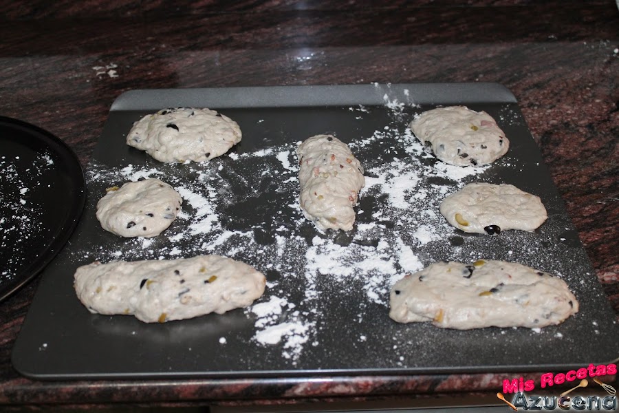Transcurridos los 30 minutos amasaremos uno o dos minutos la masa y haremos porciones de 100gr cada una y le daremos la forma que queramos y los pondremos sobre la bandeja que tengamos pensado utilizar en el horno.