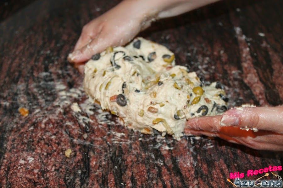 Ahora ponemos la masa sobre la barra de la cocina y amaremos bien durante 10 minutos.
