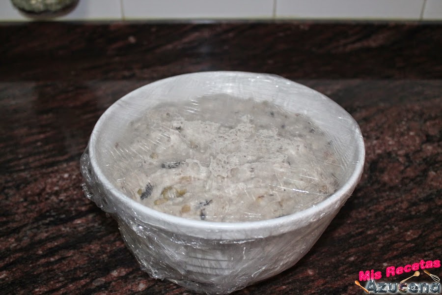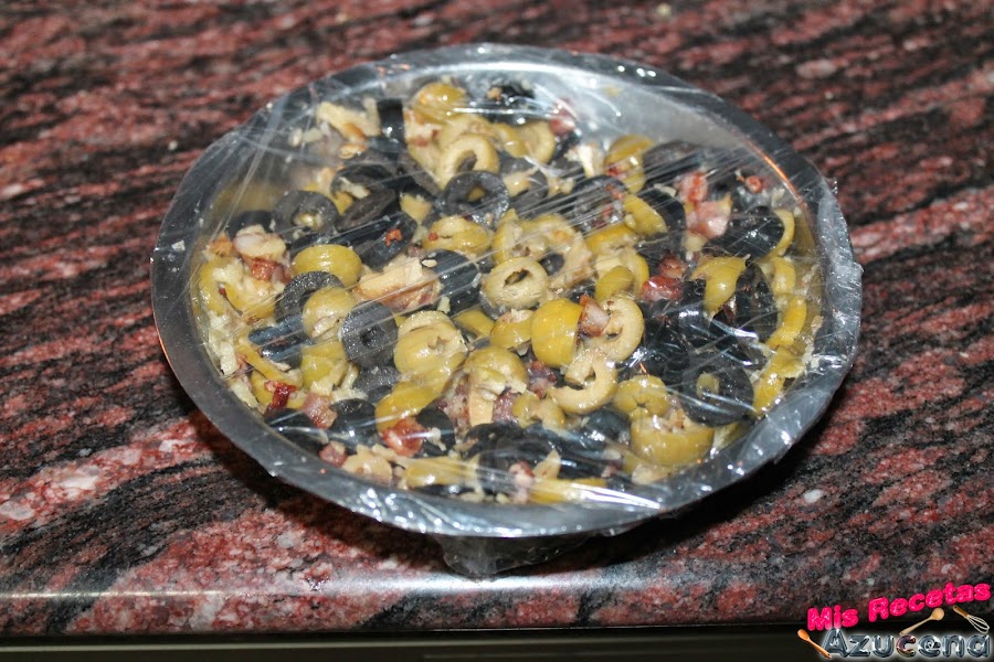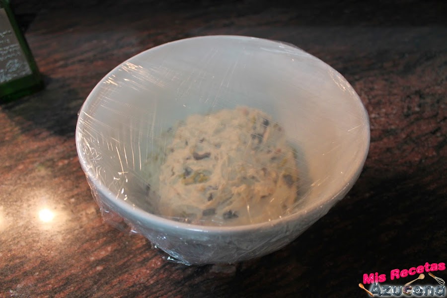 Tapamos con film transparente y lo dejaremos en la nevera toda la noche para que la masa coja bien los sabores de los ingredientes.
