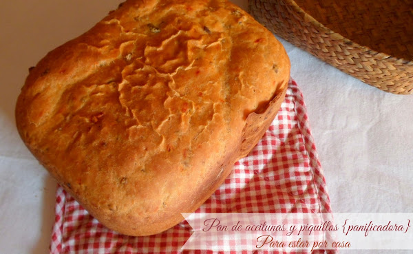 Así que, con sus consejos, con su receta de pan básico y, con unas aceitunas y unos pimientos de piquillo que tenía en la nevera, preparé este pan que, además de sabroso, llama la atención por su colorido.