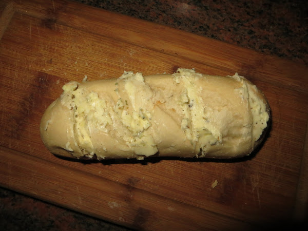 A continuación, cortamos el pan en diagonal sin llegar hasta el fondo, luego separamos estos cortes y vamos rellenado con la mezcla que hemos realizado. Metemos al horno a 180º durante 15 minutos y cuando veamos que está dorado lo sacamos. Ya veréis que buen gusto le da la mantequilla de ajo que hemos realizado. Si no tenéis pan para hornear también podéis realizarlo con pan normal, lo único que debéis hacerlo es envolverlo en papel albal para que el pan no se queme.