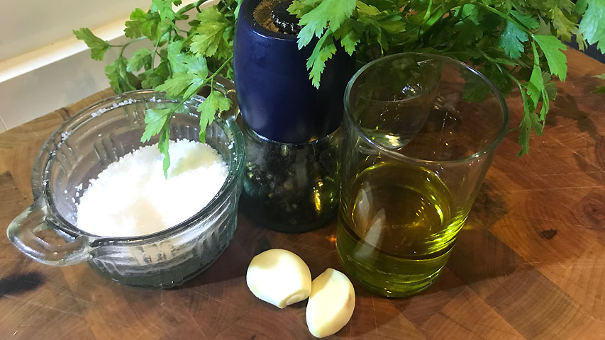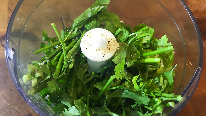 Vamos a triturar ajo, perejil y aceite salpimentados.