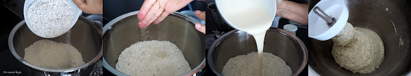 Triturar lo más fino posible las algas secas. A continuación mezclarlas con la harina. ( Otra opción seria triturar las algas, remojarlas, y escurrirlas antes de incorporarlas a la masa).