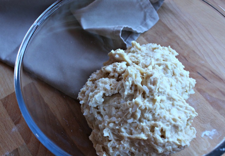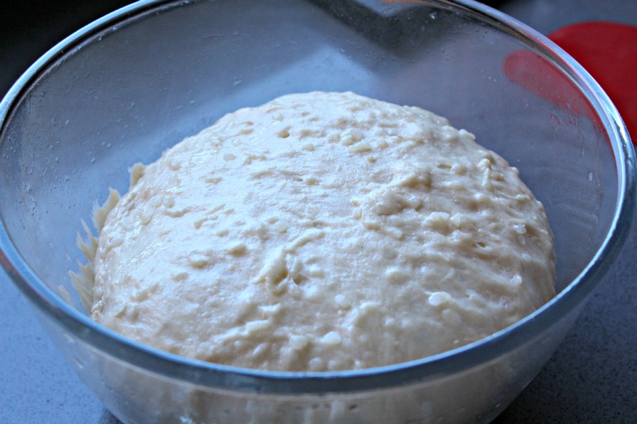 En un bol más grande, mezcla la harina con la sal y añade el contenido del otro bol (el arroz, la leche, la miel y la levadura).