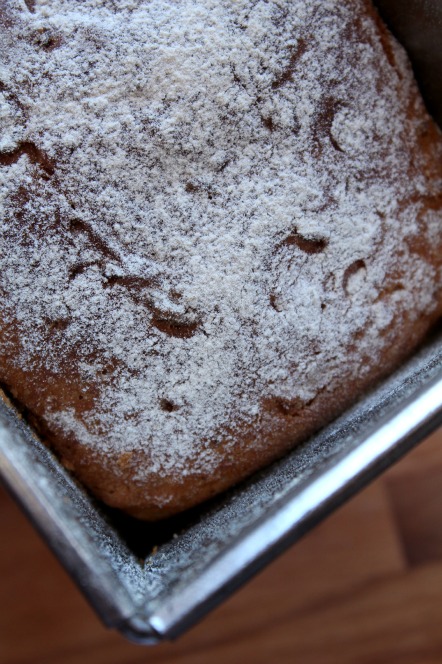 Horno a 210º. Si usas el molde con tapa, ponlo en el centro del horno directamente. Si tienes un molde abierto, espolvorea harina sobre el pan antes de meterlo al horno.