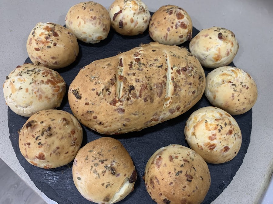 Hola hola familia! Hoy os comparto esta deliciosa receta! Un pan de bacon y queso! Es una de las primeras recetas que hicimos en el curso de repostería y tenía muchas ganas de compartirla con vosotros!!