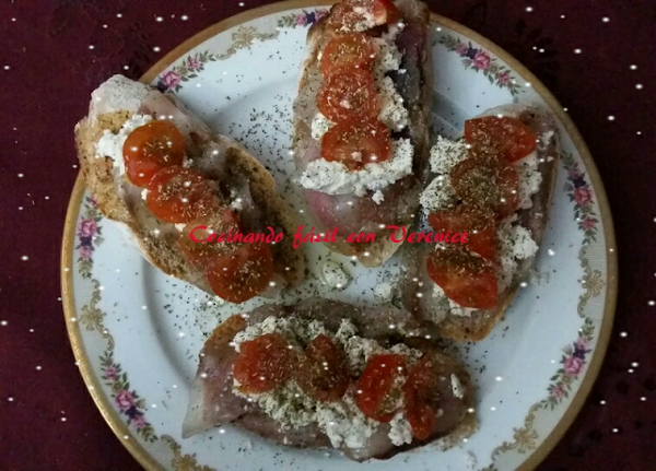 Con el pan calentito y el queso fresco recién terminado de hacer hoy, he hecho una cena picoteo "itañola". Iba a hacer unas bruschettas pero le he puesto queso fresco en vez de mozzarella y una lonchita de guanciale sobre el aceite y el pan, con unos tomatitos cherrys. ¡Como el kiko!.