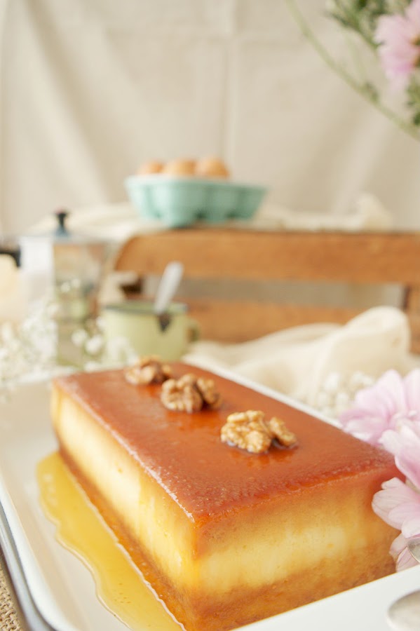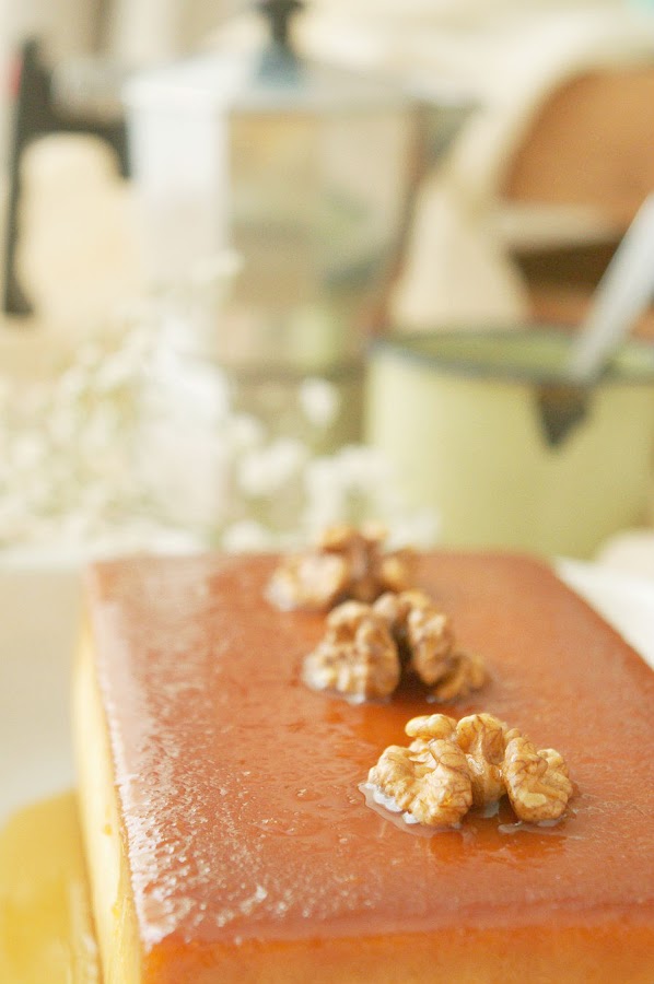 Trick: If there is too much caramel into the mold afeter turning upside down, pour some water and let dissolve for some minutes. It is delicious and you can soak pudding with it.