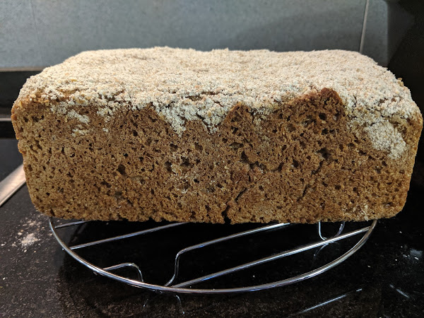 Este verano voy a tener que preparar unos cuantos panes de centeno y me niego a encender el horno. He hecho varias pruebas y he conseguido un centeno integral muy rico. Tengo que agradecer a mi amiga Belén Nogueras el consejo de que bajara algo la hidratación; estaba empeñada en el 100% y no quedaban del todo bien. Mil gracias Belén La foto de abajo es con el 100%. No sé aprecia del todo pero me quedaba hundido en el centro