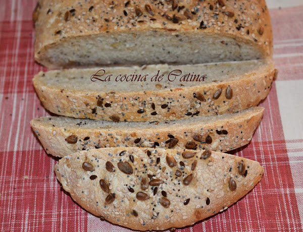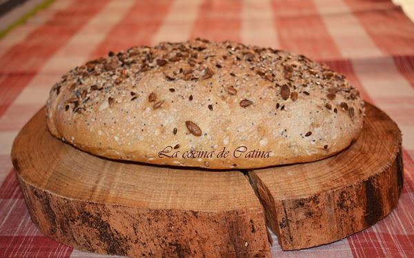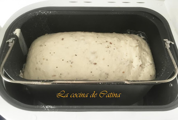Para los que no dispongan de panificadora, disolvemos en un bol la levadura con el agua. ponemos la harina y la sal en un recipiente hondo y echamos poco a poco el agua, trabajamos la masa hasta conseguir una textura homogénea. Volcamos la masa sobre la superficie de trabajo enharinada y continuamos amasando hasta que la masa quede fina y lisa. Estiramos la masa y añadimos los cereales y seguimos amasando hasta que estos se integren bien. Hacemos una bola con la masa y la colocamos en un recipiente y la cubrimos con papel film. la dejamos reposar un par de horas.