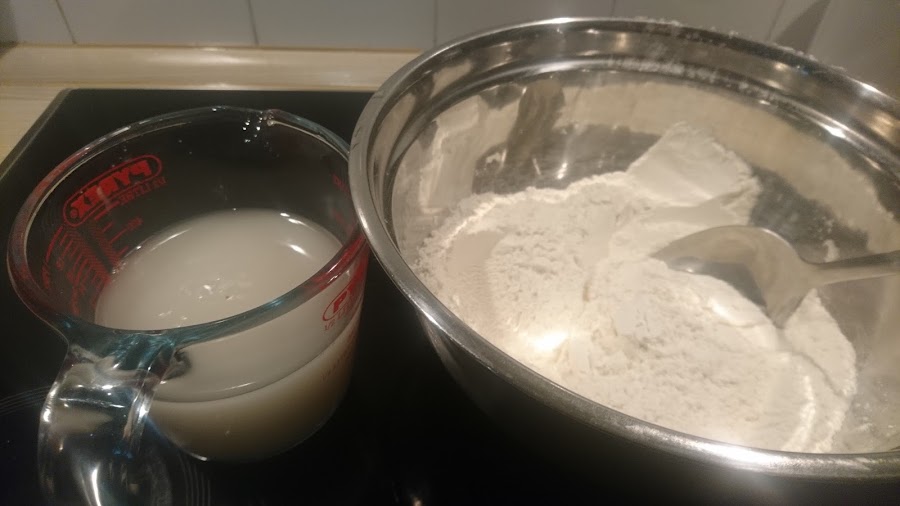 350 ml de agua entre fría entre 11ºC y 15ºCTiempo: 10 minutos + 13 horas en los distintos levados