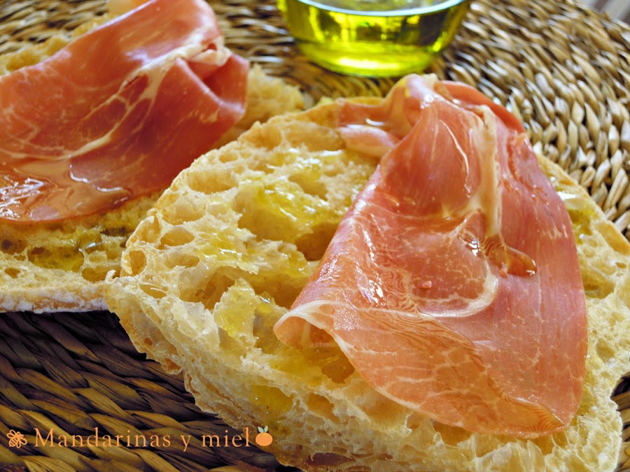 Tengo que ser sincera y deciros que este pan lo he hecho 3 veces, no me ha salido a la primera, no es que las otras dos no estuvieran buenas, el pan estaba crujiente y rico, pero me salieron feas y la miga no tenía los huecos que debe tener una chapata.....bueno, después de mucho practicar, creo que ya me han salido bastante bien, aunque aún tengo que seguir practicando y mejorar!!!