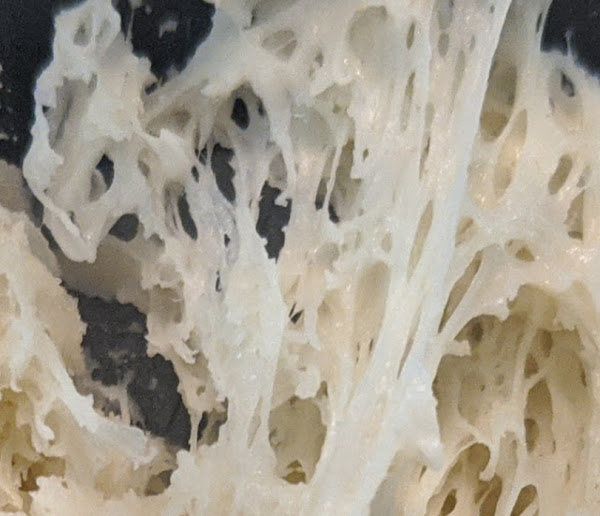 Cómo os habréis dado cuenta he trabajado con un interés: degradar mi harina lo mínimo posible: una autolisis breve, la sal añadida con todos los ingredientes, con amasados no muy largos y periodos de descanso cada vez más mayores... La masa llegó maravillosa al final del levado en bloque