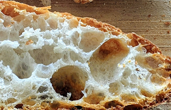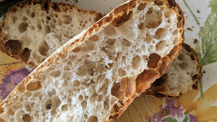 Cómo fermento he usado biga al 50% que aporta a la masa la acidez adecuada para la formación de un gluten ordenado para atrapar el dióxido de carbono en grandes burbujas. Podéis usar también masa madre sólida.