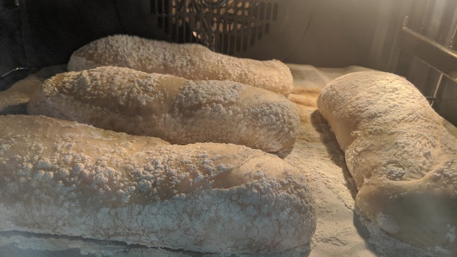 Esta primera fase de horno duró 12 minutos. Luego baje a 220 grados y puse calor arriba y abajo (y dejé la puerta abierta unos segundos para sacar el vapor que sobraba) y horneé durante casi 25 minutos