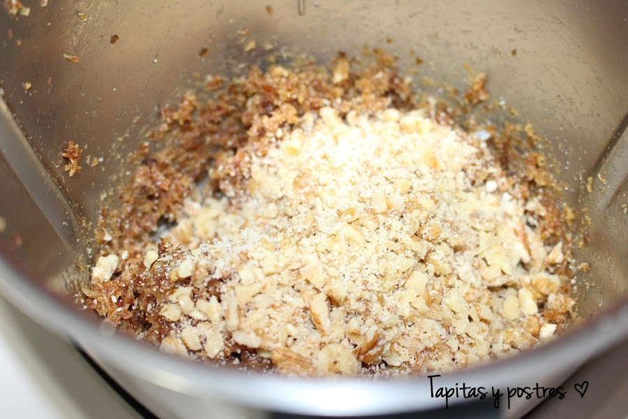 Para hacerlo sin thermomix solo necesitaréis una buena picadora para los dátiles y trocear las nueces con un cuchillo dejando trocitos pequeños.