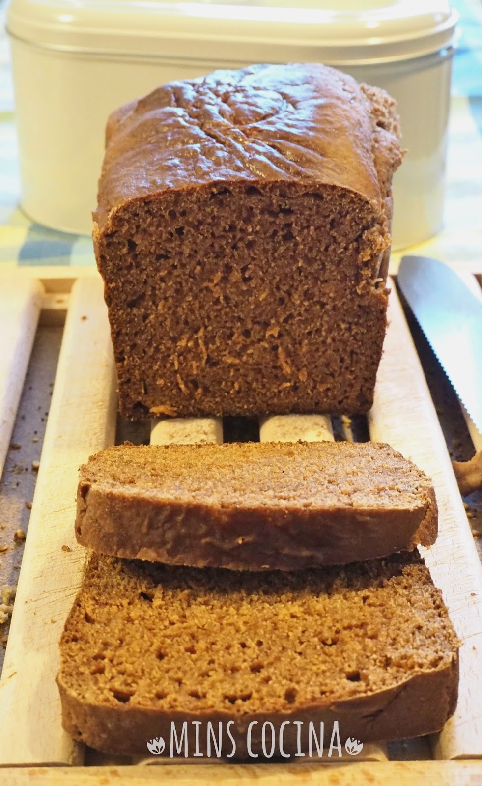 Hoy vengo con otro bizcocho especiado. Hace poco os traje un delicioso gingerbread, como se denomina en Reino Unido, y hoy os traigo un pan de especias, pain dépices, como se denomina en Francia. Si no son lo mismo, son muy parecidos y ambos deliciosos. El de hoy, además, es una versión bastante ligera ya que no lleva huevo ni ningún tipo de grasa (aceite o mantequilla), con harina integral y, en mi caso, sin azúcar añadido. Aún así queda esponjoso y delicioso. Me encanta para desayunar y últimamente lo hago a menudo. No es demasiado dulce por lo que queda muy bien untado con mermelada o miel. A mí de todas formas como más me gusta es solo, para degustar a fondo el sabor que dejan las especias y que es maravilloso. Además queda un aroma en la cocina que es una maravilla. Merece mucho, muchísimo la pena.