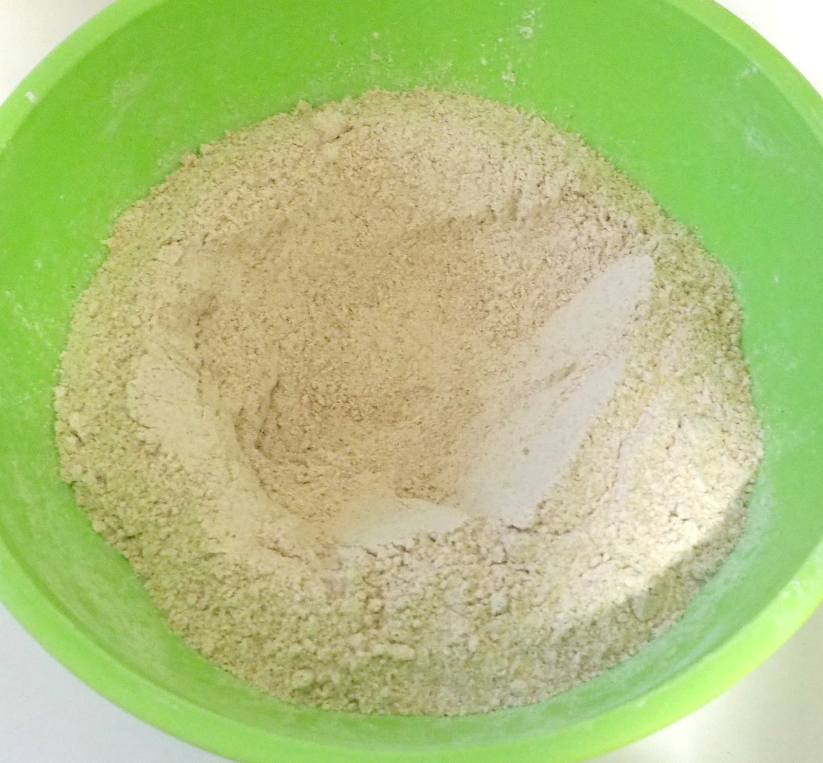 - Mientras, en un bol mezclamos las harinas con las especias.