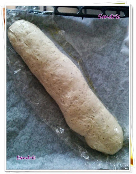 Amasamos unos 10 minutos y luego formamos una barra larga. La ponemos sobre la bandeja del horno y la cubrimos con papel film rociado con aceite para que no se pegue. Lo dejamos junto al horno unos 45 minutos o 1 hora para que leve. Cogemos unas tijeras y le damos forma. Aquí es cuando a mí se me deshinchó, pero supuestamente no debería de haberlo hecho (algo mal hice, está claro, pero bueno, de todo se aprende). En la receta original no le hacen el corte en cada parte del pan, pero a mí me apetecía hacerlo, así que... eso al gusto de cada uno. Espolvoreamos un poco de sal gruesa y harina por encima, un chorrito de aceite de oliva y al horno. Tenemos que rociar el horno con agua (con una botella de spray por ejemplo). Yo no tengo (otra cosa que tengo pendiente comprarme a parte de la cuchilla) así que me mojé las manos y le salpiqué un poco por dentro. Lo dejamos a 200ºC una media hora (o un poco más dependiendo del horno) y listo!!!