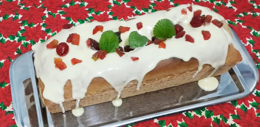 En una olla colocar leche,mantequilla,azúcar y sal dejar entibiar,mientras en el agua tibia colocar la levadura dejar hasta formar una espuma,ya listo agregar al tazón de la batidora junto con la leche tibia batir,agregar la vainilla,ron,escencia de almendras,huevos,luego por cucharadas colocar harina,luego la canela y de último coloque las frutas picadas y nueces picadas,verter la masa a un molde rectangular grande de 30cm de largo bien engrasado o un molde de chimenea grande,dejar duplicar su volumen en un lugar tibio por 1 hora, ya listo llevar al horno precalentado a 350grados f por 35min o al dorar parejo,ya listo dejar enfriar desmoldar,para preparar el glass mezcle el azúcar y por cucharadas colocar el ron debe quedar punto de chorrear,colocamos sobre el pan frío decorar con frutas confitadas y servir.