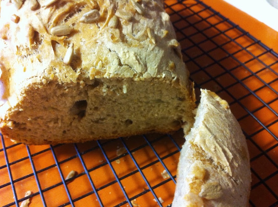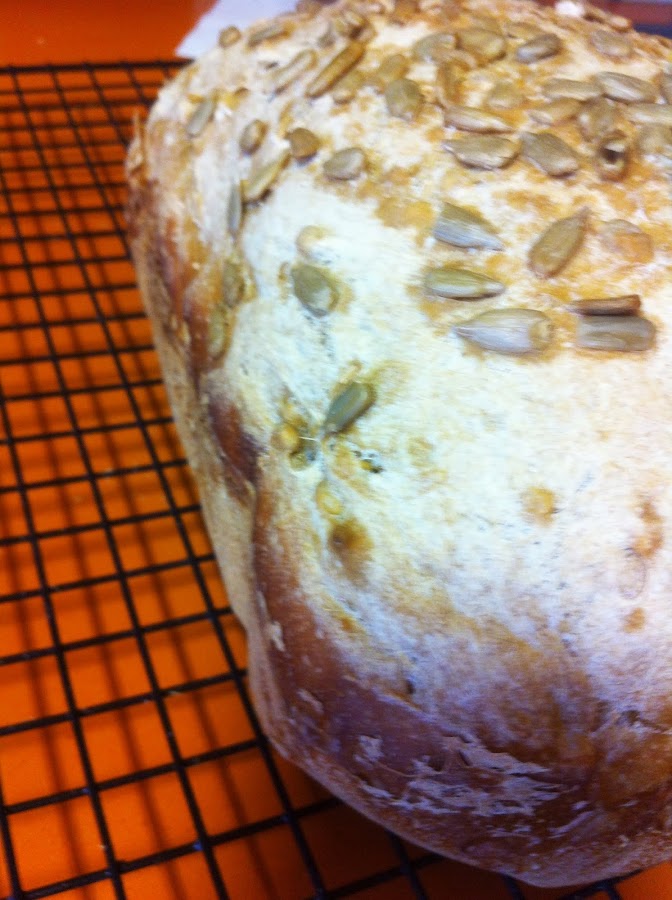 Esta entrada es simplemente para enseñar el aspecto del pan de Girasol del preparado que venden en el Aldi, lo compré hace tiempo para poder hacer pan en el horno y como no lo habia usado... pues a la pacificadora que lo hace solita jejejejejej.