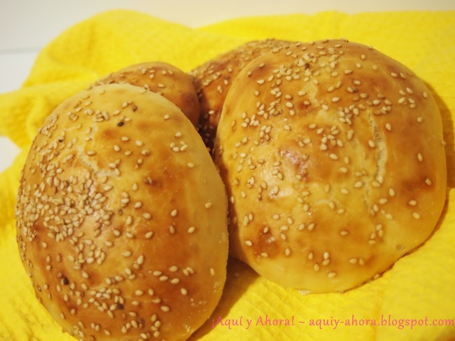 Cuando el horno esté caliente a 220º arriba y abajo, pintaremos con un huevo batido los panes y espolvoreamos por encima semillas de sésamo. Introducimos la bandeja de horno y llenamos con agua hirviendo el cuenco que habíamos dejado dentro del horno. Dejamos que se horneen unos 15 minutos aproximadamente o hasta que hayan obtenido un color ligeramente dorado.
