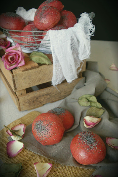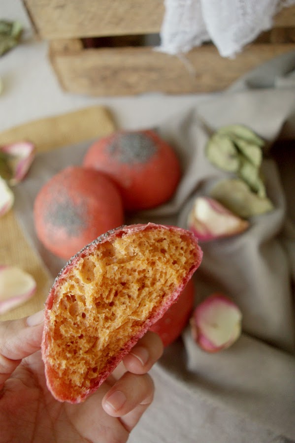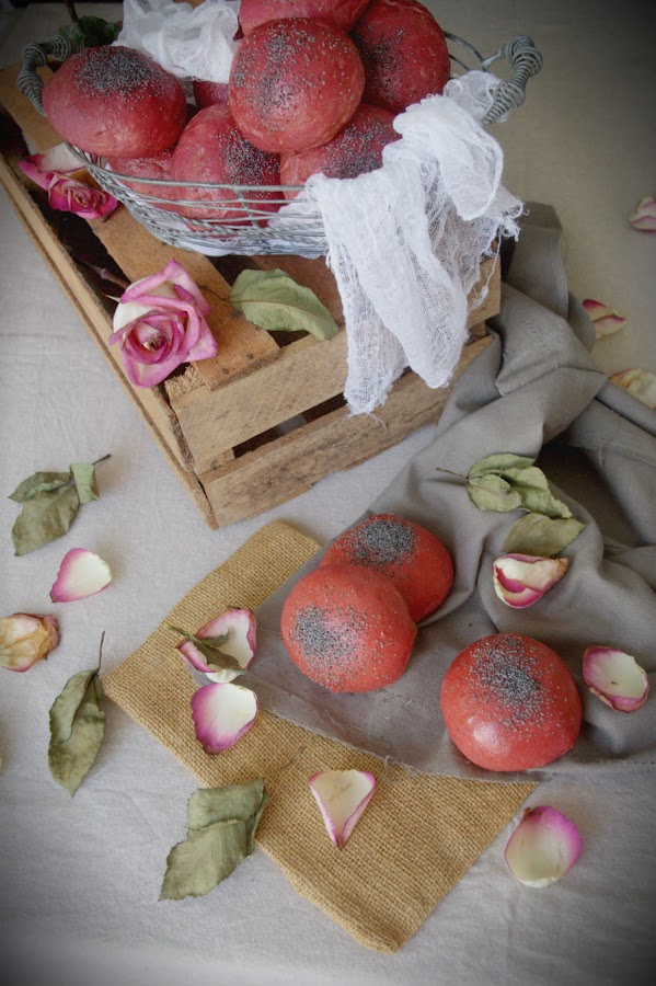 Pues como os dije, tenía yo unas remolachas abandonadas y ya había visto yo estos panecillos de remolacha en el blog de Merceditas Bakery. Los panecillos tienen un color precioso por fuera. Son perfectos para sorprender a tus invitados y utilizarlos en unas hamburguesas como hice yo.