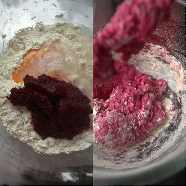 Tenía por el frigorífico unas remolachas que había cocido para hacer un bizcocho y probar qué tal y al final se han quedado para pan.
