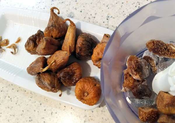 Cortar el rabito de los higos, enjuagarlos para quitar la harina que traen impregnada y secarlos con papel de cocina. Pasarlos por la picadora de forma que quede bien triturado, lo más fino posible.